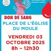 L’Établissement Français du Sang (EFS) organise une collecte de sang le vendredi 03 octobre 2025, de 8h à 12h30, Place de l’Église du Moule. Cette...
