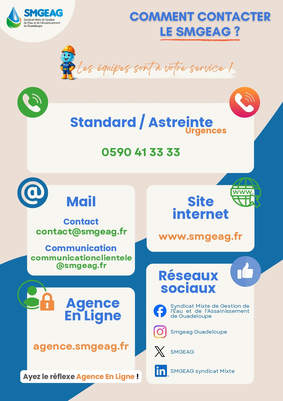 La Ville du Moule informe la population que, en cas de pénuries ou de manques d’eau, les administrés sont invités à contacter directement le SMGEAG.