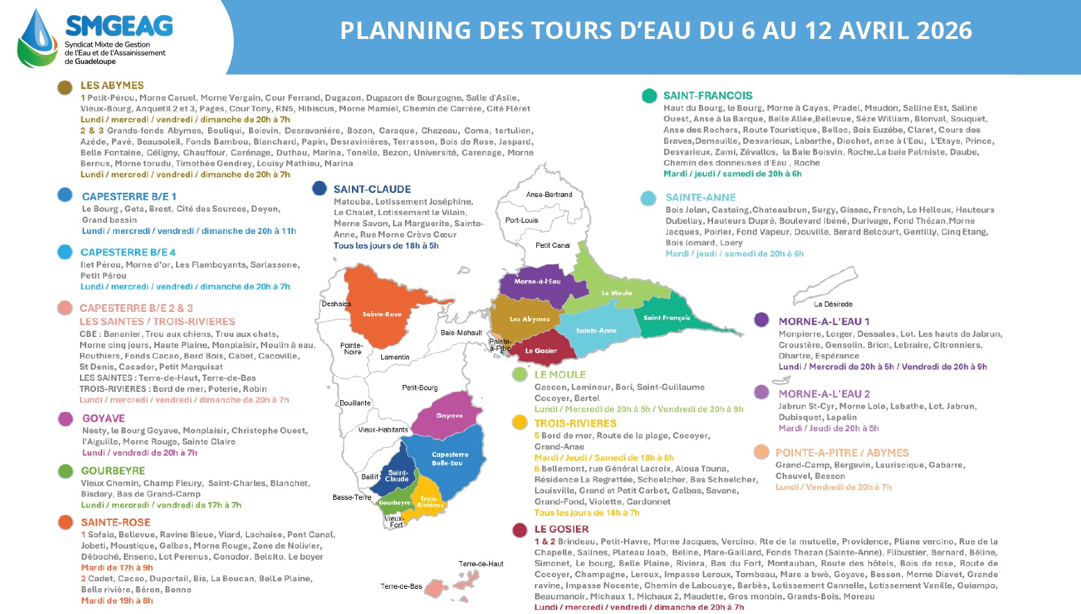Planning des tours d’eau du 6 au 12 avril 2026