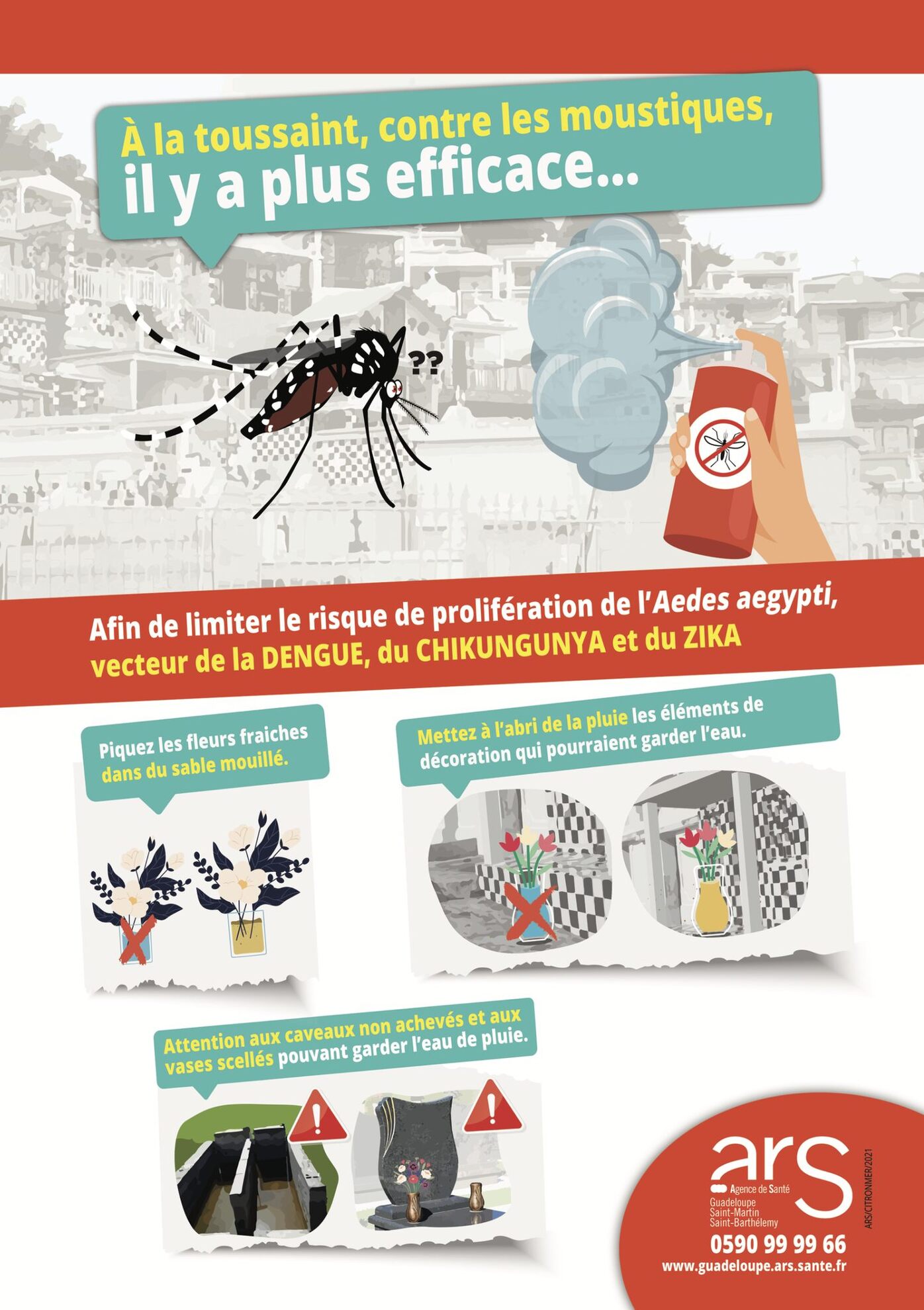 À l’approche de la Toussaint, la Ville du Moule et l’Agence Régionale de Santé rappellent à l’ensemble de la population l’importance de rester vigilants face à la circulation du virus de la dengue.
