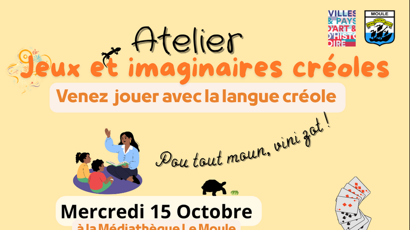 La Médiathèque du Moule vous invite à un atelier ludique et ouvert à tous autour des mots, des expressions et des contes créoles le mercredi 15 octobre de 9h à 11h à la Médiathèque Le Moule – 48 rue Saint-Jean.