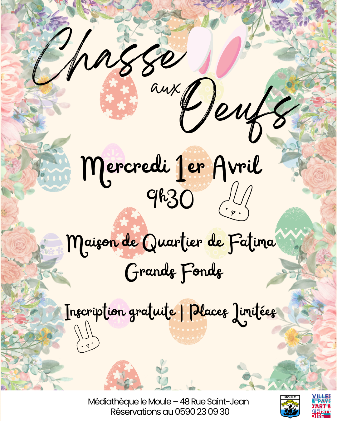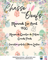 Mercredi 1er Avril, à partir de 9h30, rejoignez‑nous pour une grande chasse aux œufs pleine de rires, de surprises et de douceurs. Petits et grands, venez partager un moment convivial et repartir avec vos trésors de Pâques !