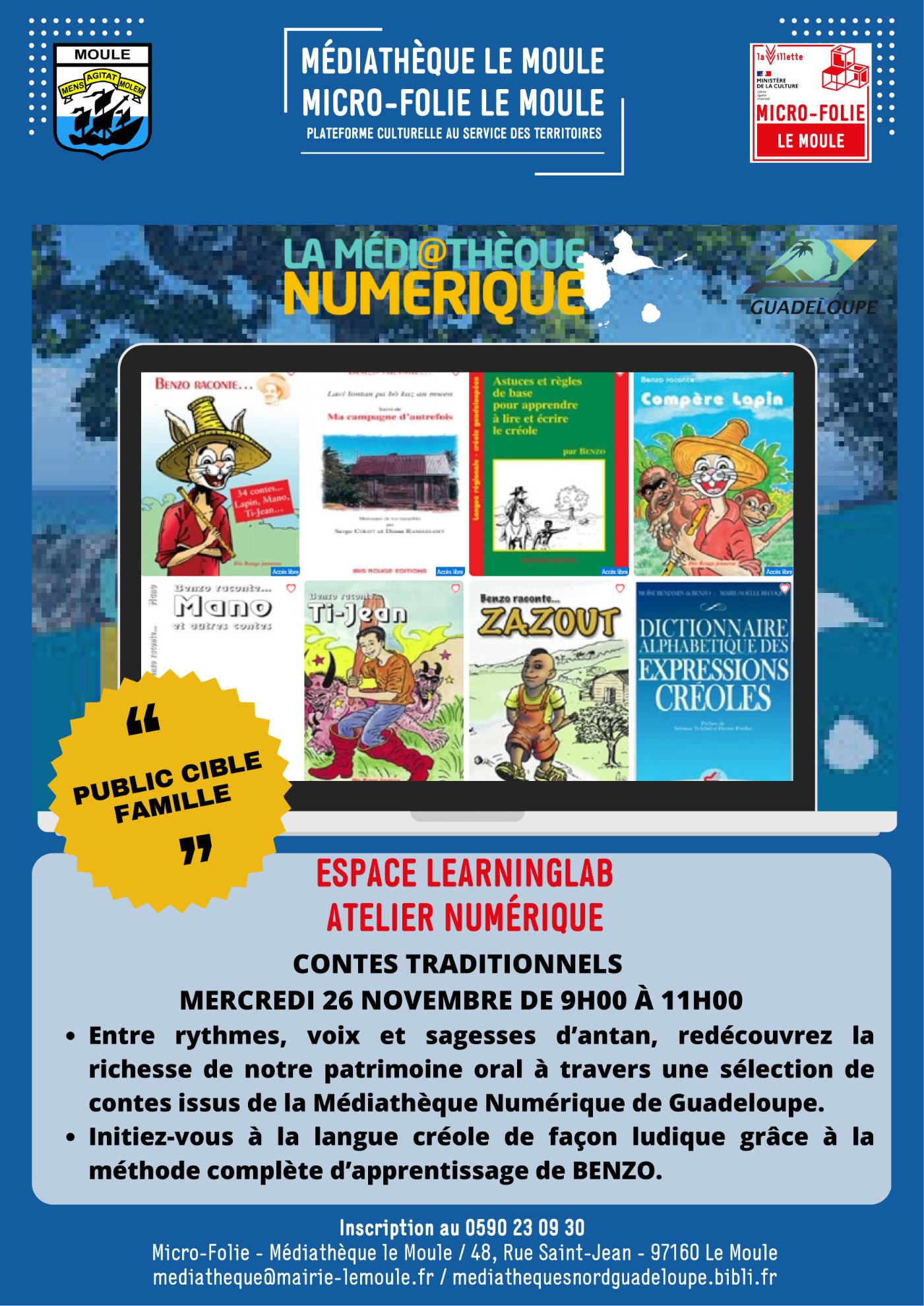 Mercredi 26 novembre 2025 de 09h00 à 11h00 Espace Learning Lab - Médiathèque Le Moule Ajouter à votre agenda