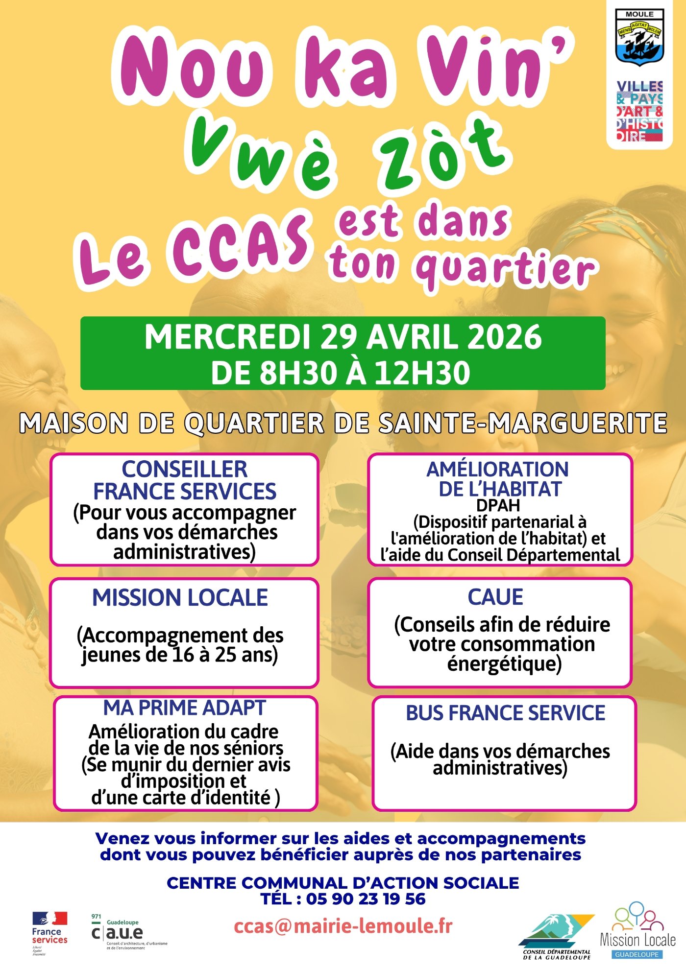 Pour plus d’information : 0590 23 19 56 - ccas@mairie-lemoule.fr