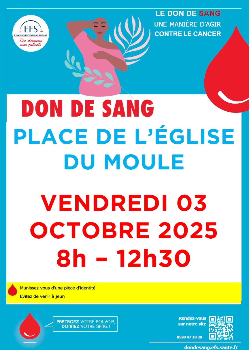 Pour toute information complémentaire, les habitants peuvent contacter l’EFS au 0590 47 18 20 ou consulter le site internet dondesang.efs.sante.fr.