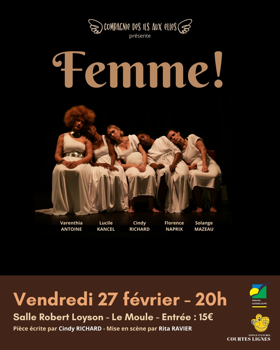 Rendez‑vous le vendredi 27 février à 20h, à la Salle Robert Loyson au Moule, pour une soirée théâtrale vibrante et engagée.