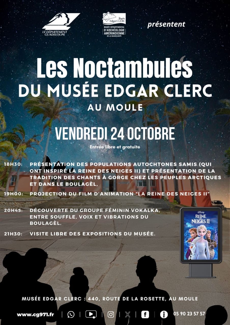 Le Conseil Départemental de la Guadeloupe et le musée Edgar Clerc vous invitent aux "Noctambules du musée" ! Rendez-vous vendredi 24 octobre 2025 à 18h30.
