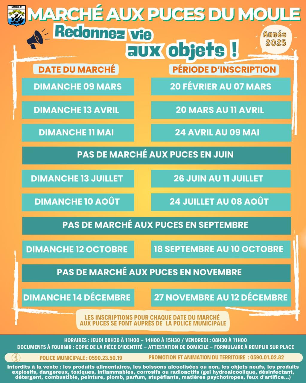 Les inscriptions se font à la Police Municipale le jeudi (de 8h30 à 11h et de 14h à 15h30) et le vendredi (de 8h30 à 11h) selon un calendrier précis que vous retrouverez en pièce jointe.