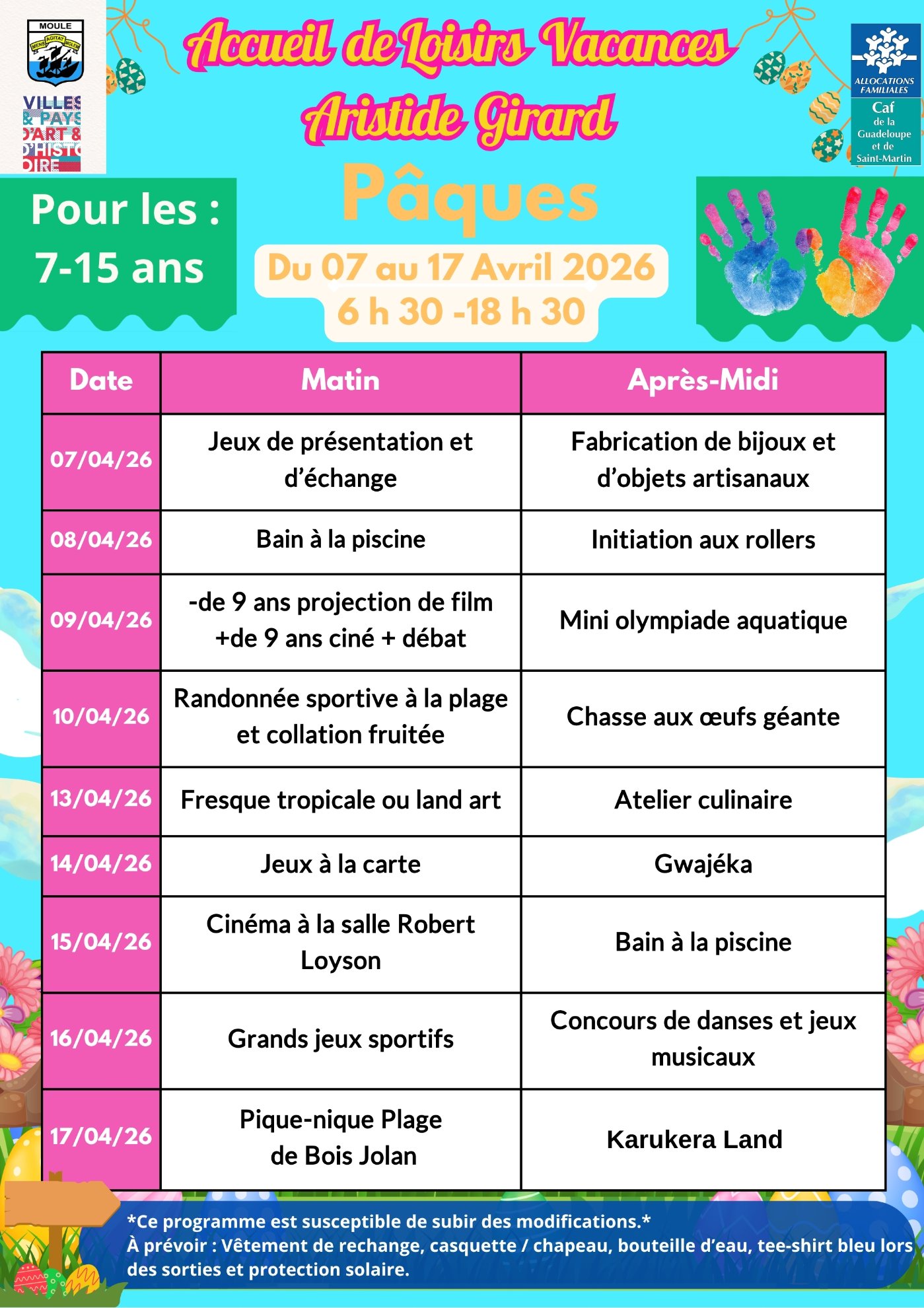 Du 07 au 17 avril 2026, entre activités ludiques, ateliers et moments de partage, tout est mis en œuvre pour favoriser l’épanouissement, l’expression et le vivre-ensemble.