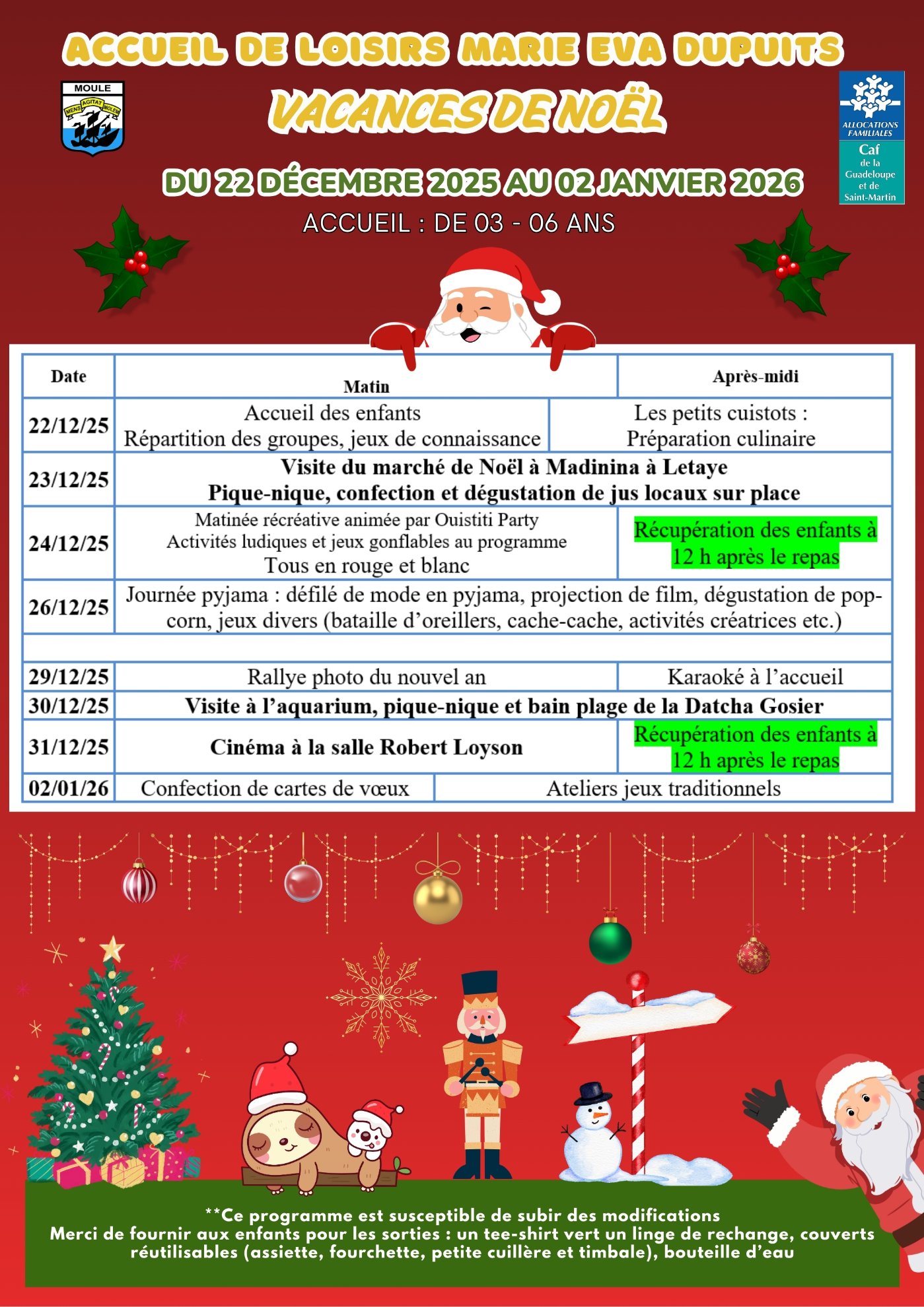 Du 22 décembre 2025 au 2 janvier 2026, les équipes d’animation ont préparé un planning riche et varié pour offrir aux enfants des vacances inoubliables.